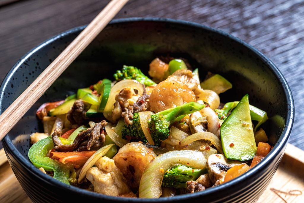 Mit Chicken, Beef und Garnelen (leicht scharf)