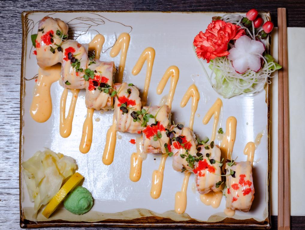 Lachs | Cream Cheese | Avocado | Aburi Lachsmantel | Masago | Sprossen